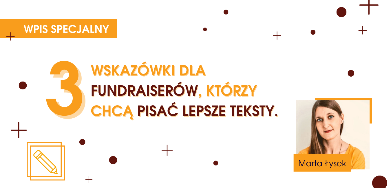 Nie trzeba długo zajmować się fundraisingiem, żeby zobaczyć, że pisanie jest w nim po prostu konieczne. Nie trzeba też wielu napisanych tekstów, by doświadczyć, że tak, jak wszystko inne, pisanie może wychodzić lepiej albo gorzej. Oto trzy wskazówki, które mogą Ci pomóc, jeśli jesteś fundraiserem i chcesz pisać lepiej, skuteczniej, mądrzej.
